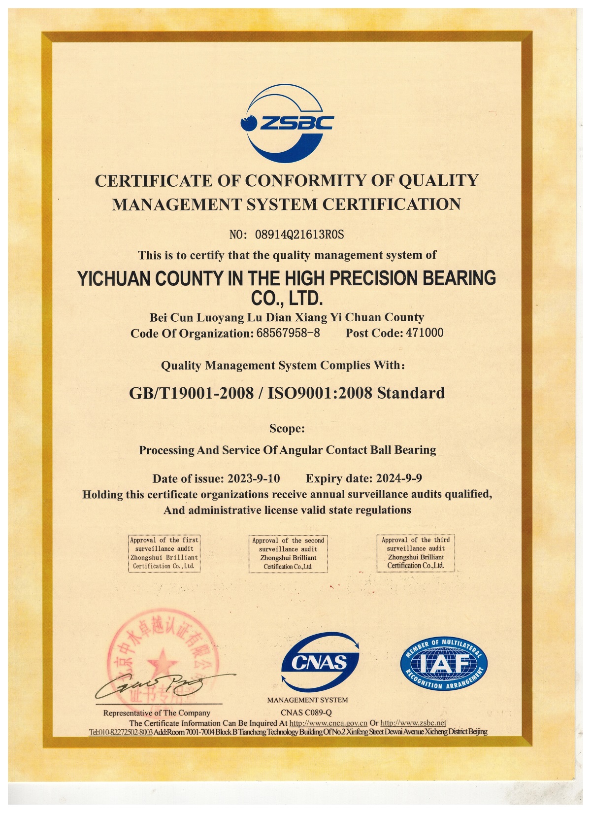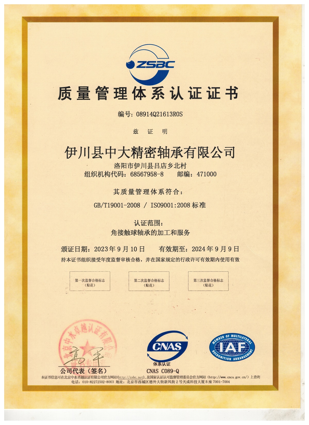質(zhì)量管理體系認(rèn)證證書中文
